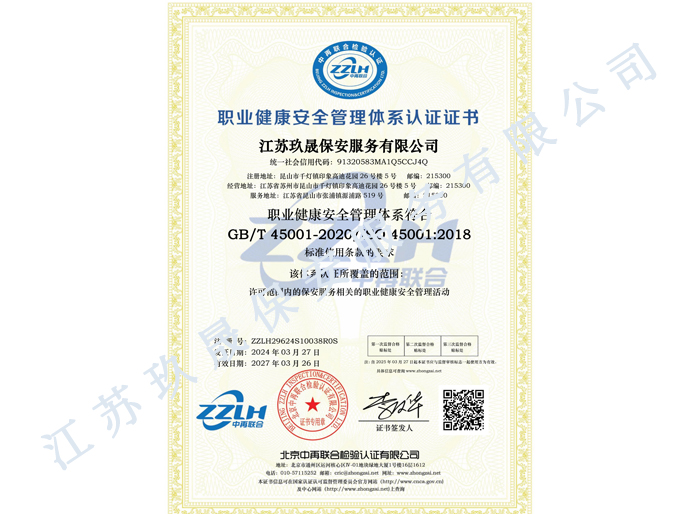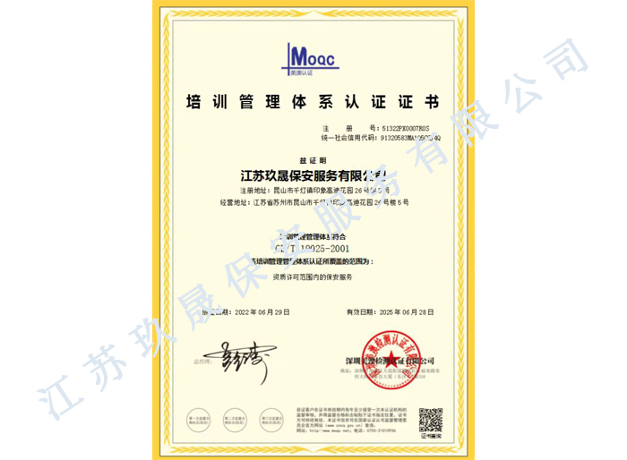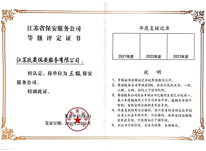 江蘇玖晟保安服務有限公司成立于江蘇省昆山市千燈鎮。注冊資金:5000萬,是擁有省公安廳頒發的保安服務許可證的企業【蘇公保服20170046】,也是昆山市保安協會常務理事單位。